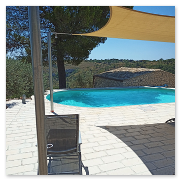 Ruhige Panoramalage mitten im Olivenhain – ideal zum Entspannen und für Ausflüge zu sieben UNESCO-Stätten in der Umgebung. Unsere Anlage bietet einen gepflegten Pool, großzügige Terrassen, schnelles WLAN, Klimaanlage und sichere Parkplätze – alles, was Sie für einen unbeschwerten Urlaub brauchen.