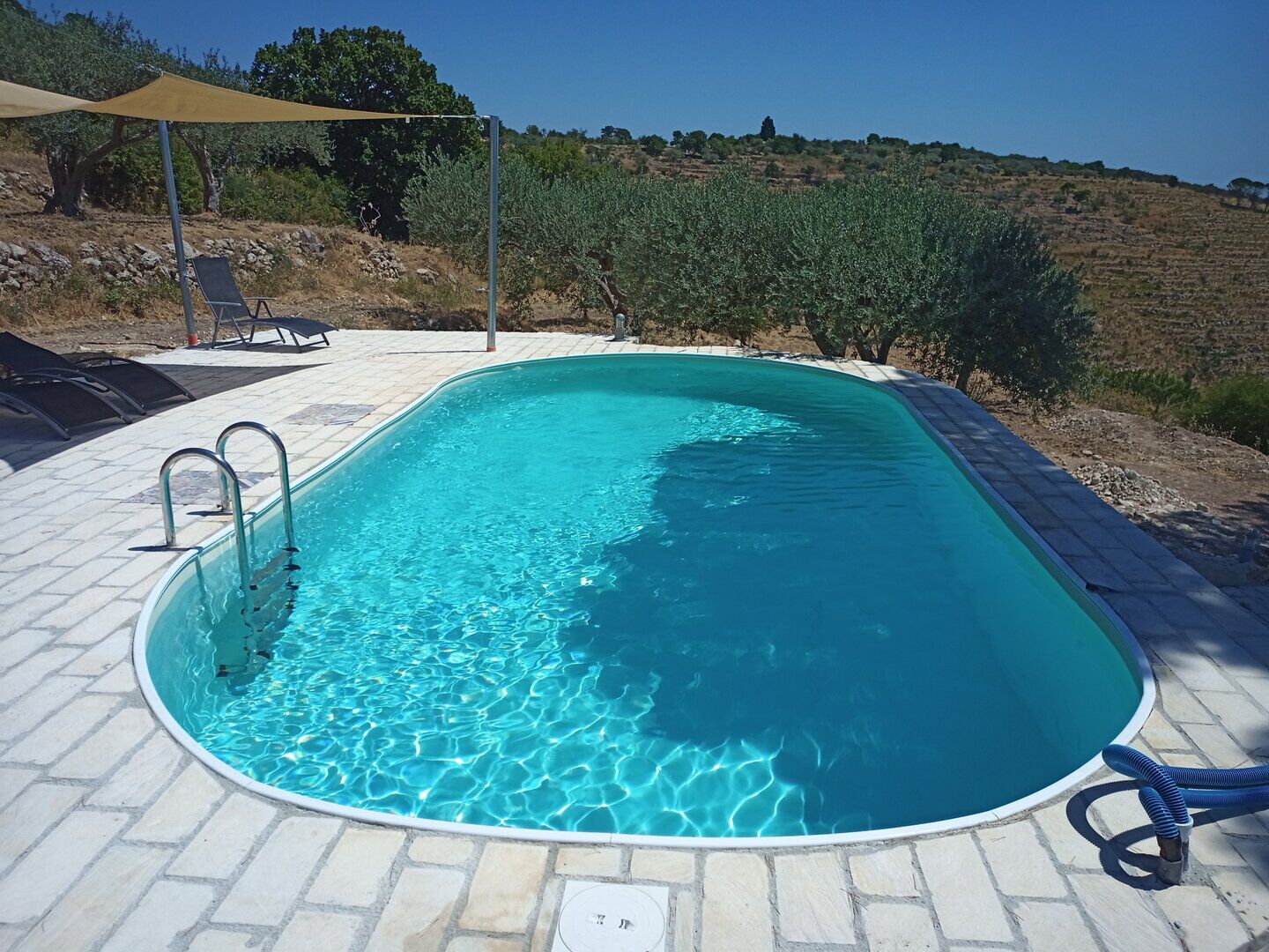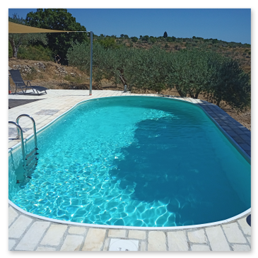 Unser Panorama-Pool liegt sonnig mit weitem Blick über die Hügel.