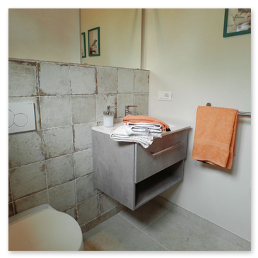- Bad: ebenerdige Dusche, Föhn, Handtuchset