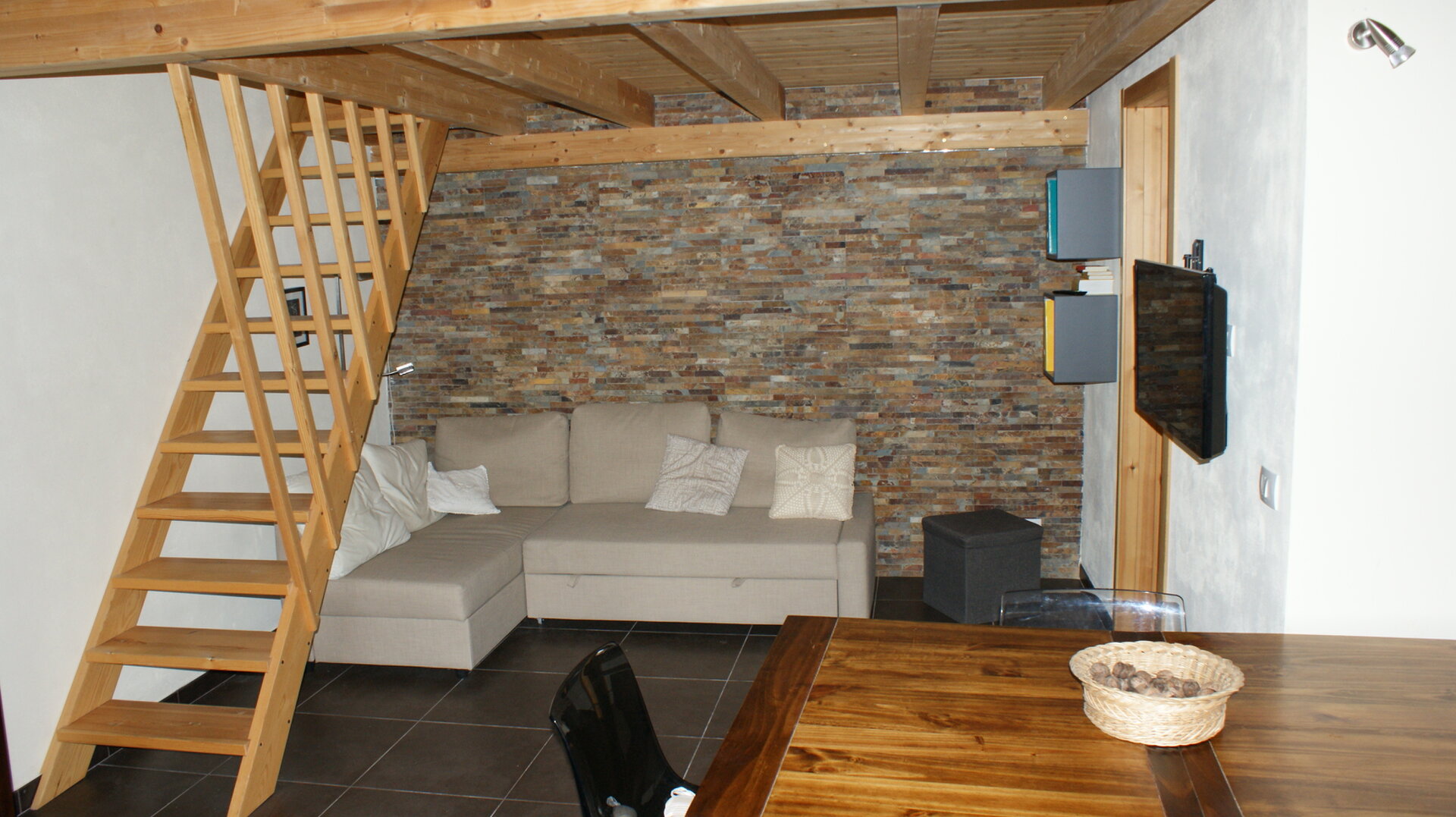 - Wohnen: Lichtdurchfluteter Wohnraum mit Sofa, Esstisch, Smart-TV