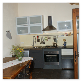- Küche: Induktion, Backofen, Kühlschrank/Gefrierfach, Spülmaschine, Wasserkocher, Toaster, Espressomaschine, Grundgewürze